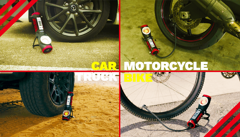 Works with Multiple Tire Types – Compatible with cars, SUVs, motorcycles, bicycles, and even sports equipment for versatile use.