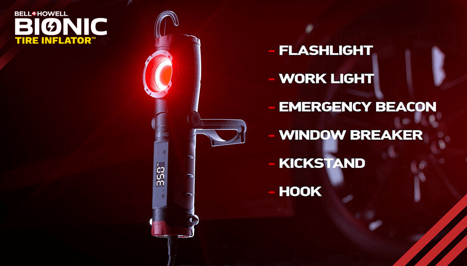 Bionic Tire Inflator is equipped with a rechargeable lithium-ion battery.